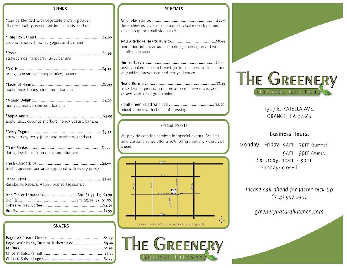 The Greenery Natural Kitchen Menu